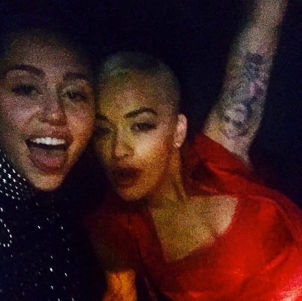 Miley posted this slighty-fuzzy pic of her and singer Rita Ora getting down at a Gala after-party.