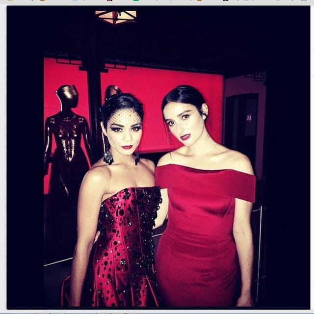 Spring Breakers star Vanessa Hudgens and singer Banks, both looking stunning in red H&M gowns, got close to snap this selfie. Hudgens captioned the pic, "The ladies in red."