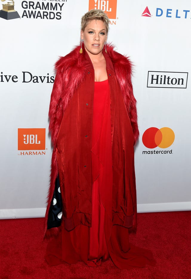 Ahead of introducing The Weeknd’s performance, the "Focus" singer looked red hot on the GRAMMYs red carpet on Feb. 15. She posed in a red silk Romona Keveža red crepe gown that featured a corset bodice and fluted skirt.