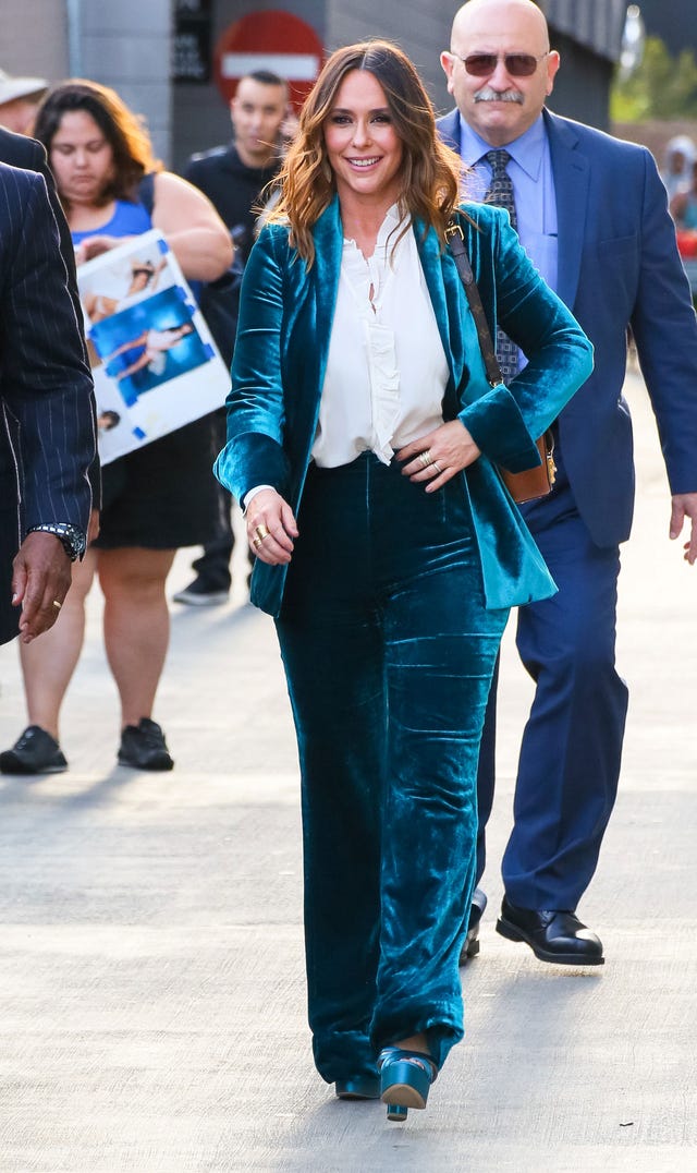 The mom of three stunned at the Los Angeles premiere of her new film, Nine Lives, on Aug. 1. Garner rocked a scarlet fit-and-flare Alaia dress with a laser hem, styled with a pair of studded black suede heels but no jewelry.