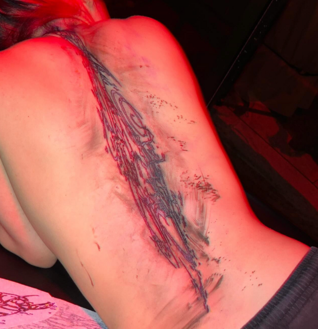 The new ink, executed by tattoo artist Matias Milan, features a mesmerizing line design that spans the length of Eilish's spine. Eilish didn't provide any insight into the meaning behind this intricate artwork, and she also remained tight-lipped about when exactly the tattoo was done. However, fans received a sneak peek of the top portion of this all-black tattoo in a post from Sept. 20, piquing their curiosity.