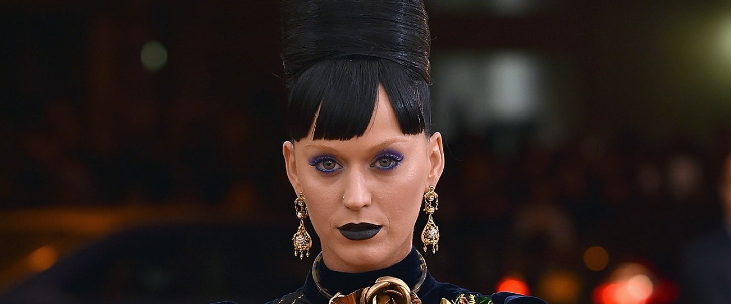 This is how you bring it on the Met Gala red carpet. The "Teenage Dream" singer's lush velvet Prada gown was a showstopper on its own, but it's the details of Perry's look that took it to the next level. From the bleached eyebrows to the black lipstick and regal updo, we love her level of commitment.