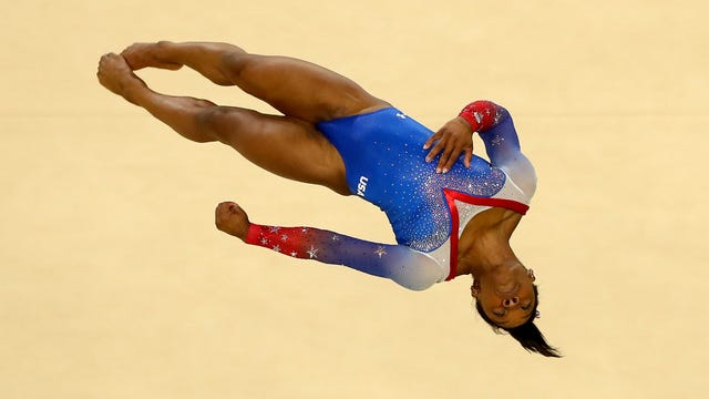 Biles battled back from a bronze medal on the balance beam to earn gold in the women's floor exercise on Aug. 16.