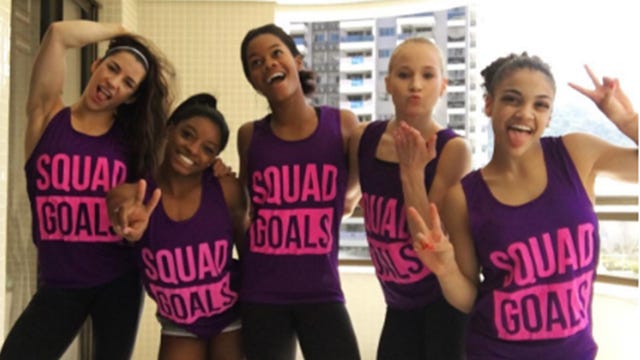 The Final Five wore their #squadgoals on their tees. "Ready to rock it at podium training with these babes," Kocian captioned the adorable pic on Aug. 4.