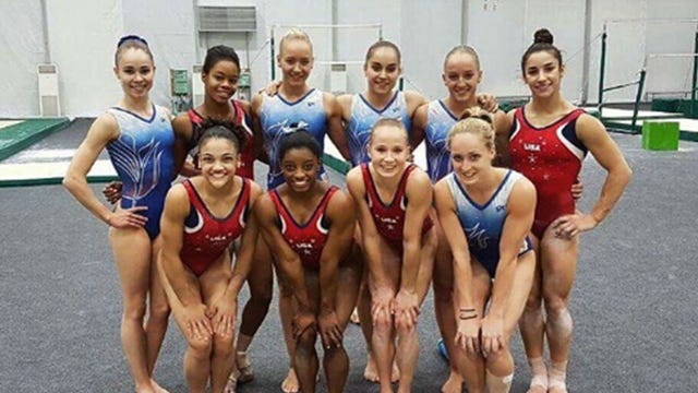 Kocian captioned this group shot of the Final Five with their coaches on Aug. 5 "podium training."