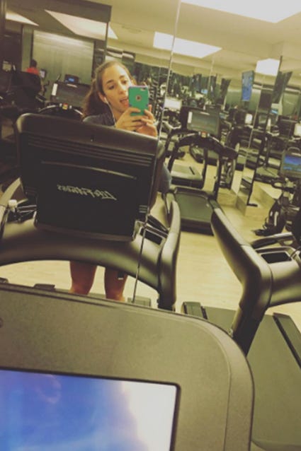 We bow down! Two days after winning silver in the floor final, Raisman was already back in the gym, appropriately using the hashtag "#motivated" and a strong arm emoji for this treadmill selfie.