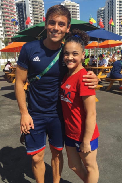 Hernandez was very happy to see British diver Tom Daley while the two were wandering around the Olympic Village on Aug. 17.