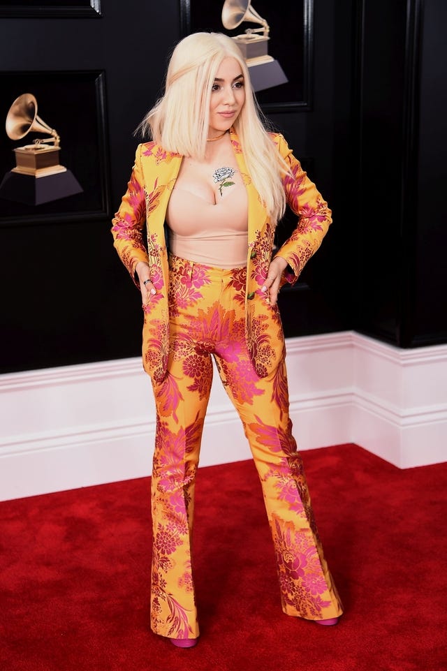 Bright colors were a big hit on the carpet, but this silver-and-fuchsia lurex jumpsuit the "Tyrant" singer wore was a little too bold.