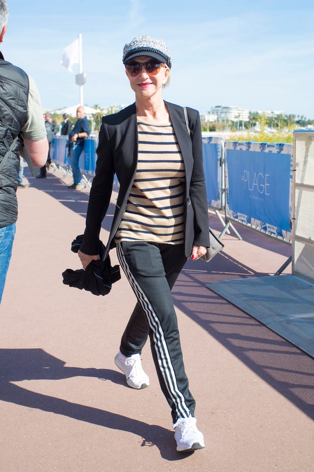 A star in stripes! Mirren was Parisian chic on top, comfy on the bottom while out and about in Cannes.