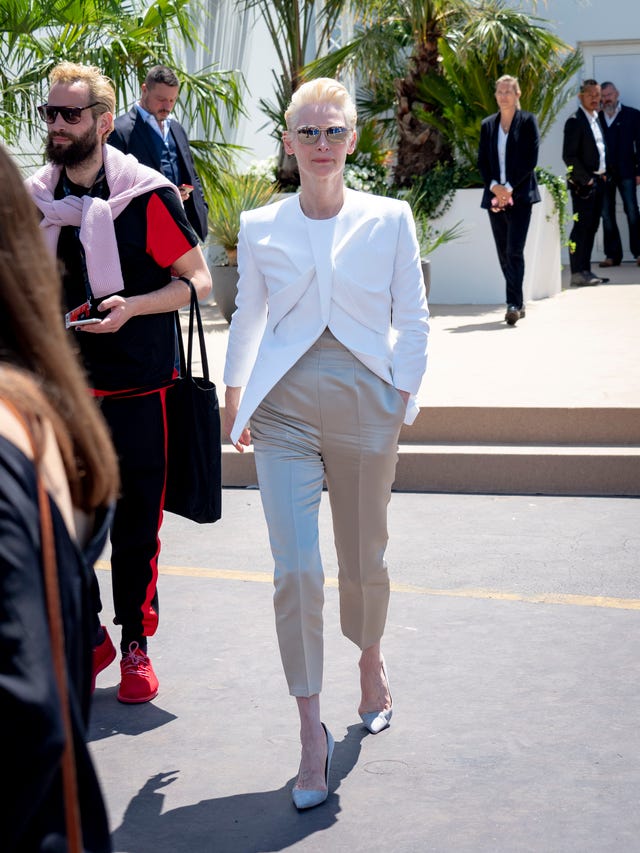 The 58-year-old actress but a fashion-forward, spring-ready spin on businesswear as she headed to the photocall for The Dead Don't Die.
