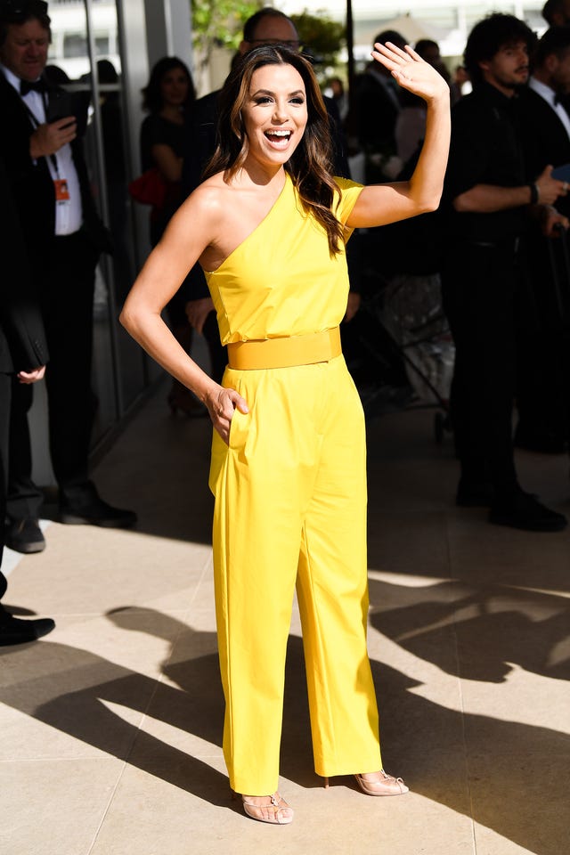Tan-tastic! Longoria suited up in a monochromatic ensemble for a busy day in Cannes.