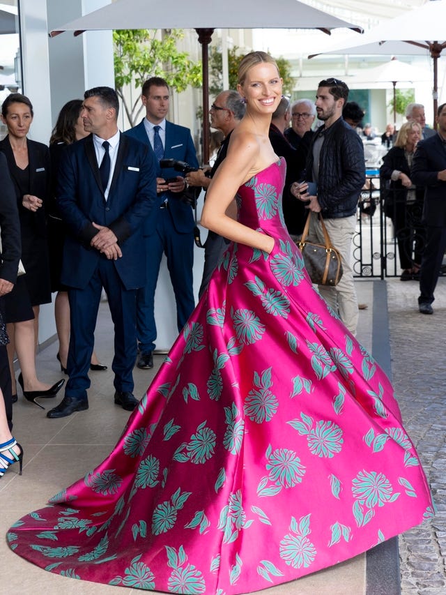 The Czech model-actress looked gorgeous in a strapless, magenta floral dress en route to the Once Upon a Time in Hollywood premiere.