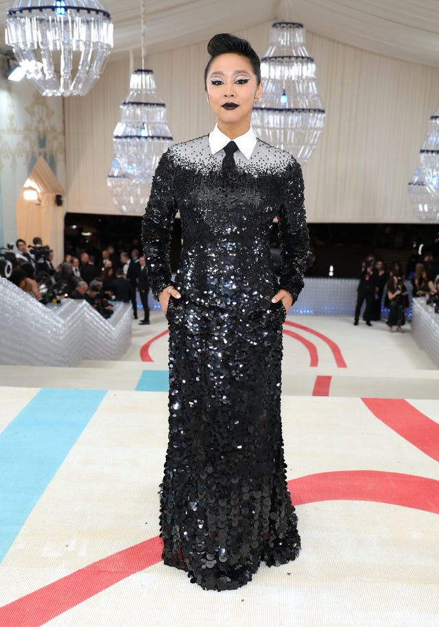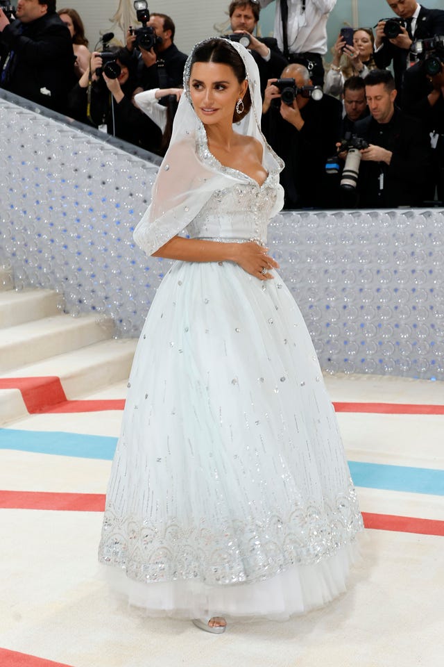 The dress code remains "in honor of Karl." The co-chairs for the spring fashion event are Michaela Coel, Penélope Cruz, Dua Lipa, tennis pro Roger Federer, and Vogue editor-in-chief Anna Wintour. The annual gala is a fundraiser for New York City's Metropolitan Museum of Art.