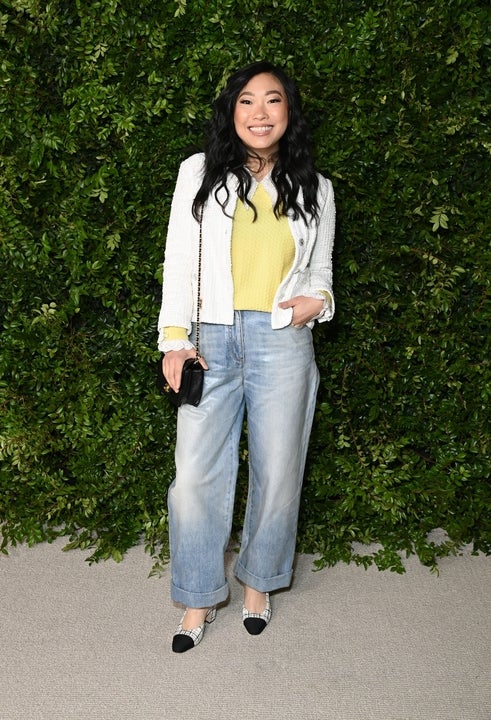 The actress sported a yellow cardigan and vest from the Chanel Cruise 2024/2025 collection with denim jeans from the Fall-Winter 2024/2025 Ready-to-Wear pre-collection.