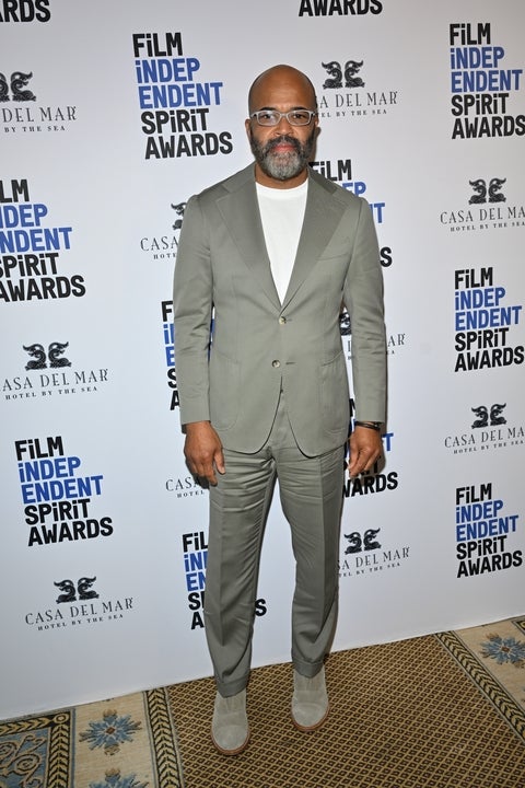 The American Fiction actor attends the nominee brunch in a gray suit.