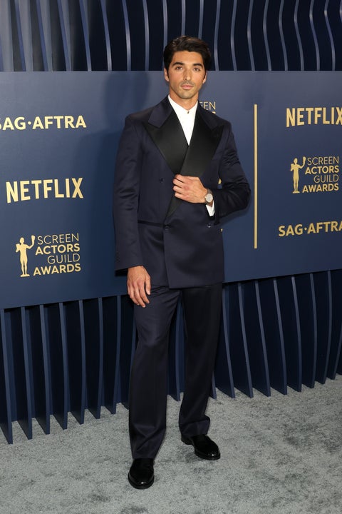The Minx actor wears an all-black double breasted suit to the Screen Actors Guild Awards on Feb. 24 in Los Angeles, California.