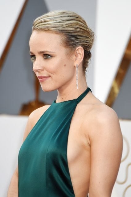 Rachel McAdams stunned at the 88th Annual Academy Awards on Feb. 28, sporting diamond earrings, matte pink lipstick, emerald green eyeshadow and a sophisticated updo.