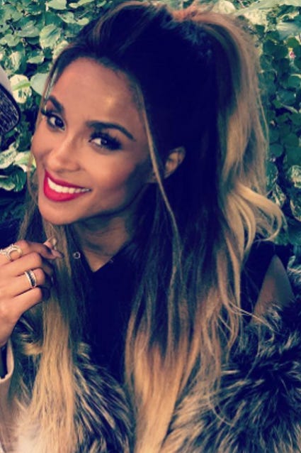 Leaving the bottom layer of her hair down and straight, Ciara pulled the rest of her caramel-colored locks into a high ponytail for a sassy but sweet look while filming a Christmas special in New York City on Nov. 3.
