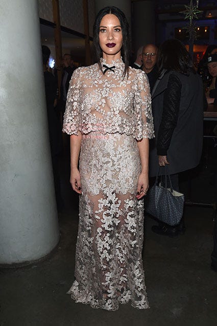 If you have a penchant towards the Victorian era, the very sheer lace frock Munn donned at the New York City afterparty for her new movie, Office Christmas Party, is right up your alley -- not to mention her bold oxblood lips!