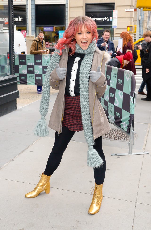 The violinist gave two thumbs up outside of the AOL Live studio in New York City in December 2018, and that's the same way we feel about her Kool-Aid pink locks.