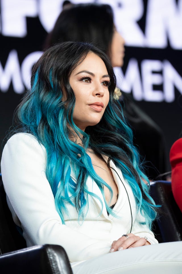 We got the blues in the best way possible when the Pretty Little Liars: The Perfectionists star surprised us at the 2019 TCA Winter Press Tour in Pasadena, California, showing up with extended roots flowing into long, loose peacock blue waves.
