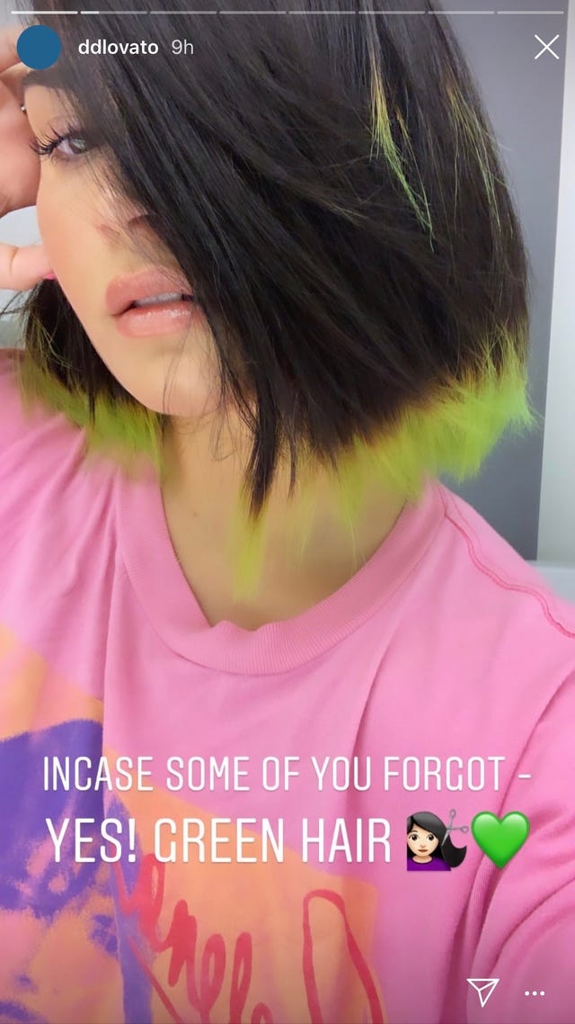 Green with envy! The "Sober" singer was pretty stoked to show off her recently dyed lime tips with her fans, posting a shot of her matching neon nails along with a selfie to her Instagram Story in September 2019.