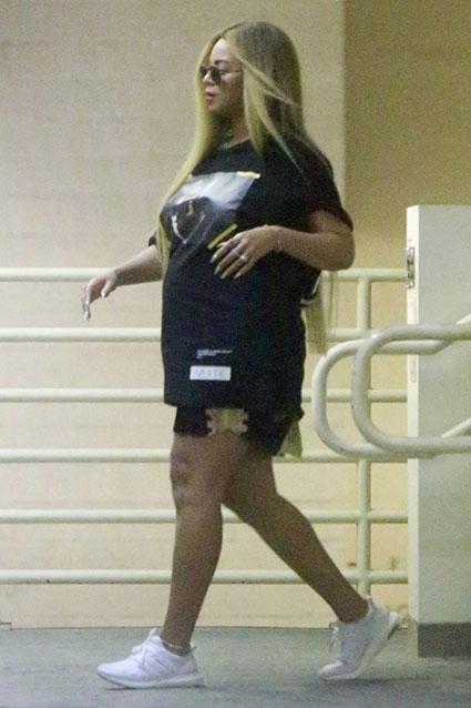 The "Formation" singer kept her baby bump under wraps in a pale yellow dress topped with a pastel pink jacket, which she paired with an oversized dusty rose clutch and pointy T-strap gold heels when she stepped out to support her mom, Tina Knowles, and the young girls she mentors on a field trip to see the Alvin Ailey American Dance Theater perform in L.A. on March 11.