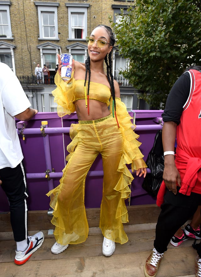 She's seeing mellow yellow! The British model gave off flamenco vibes on the Red Bull Music X Mangrove at the Notting Hill Carnival in London, where she got into the groove in this sheer ruffled set, white dad sneakers and sunshine-hued shades.