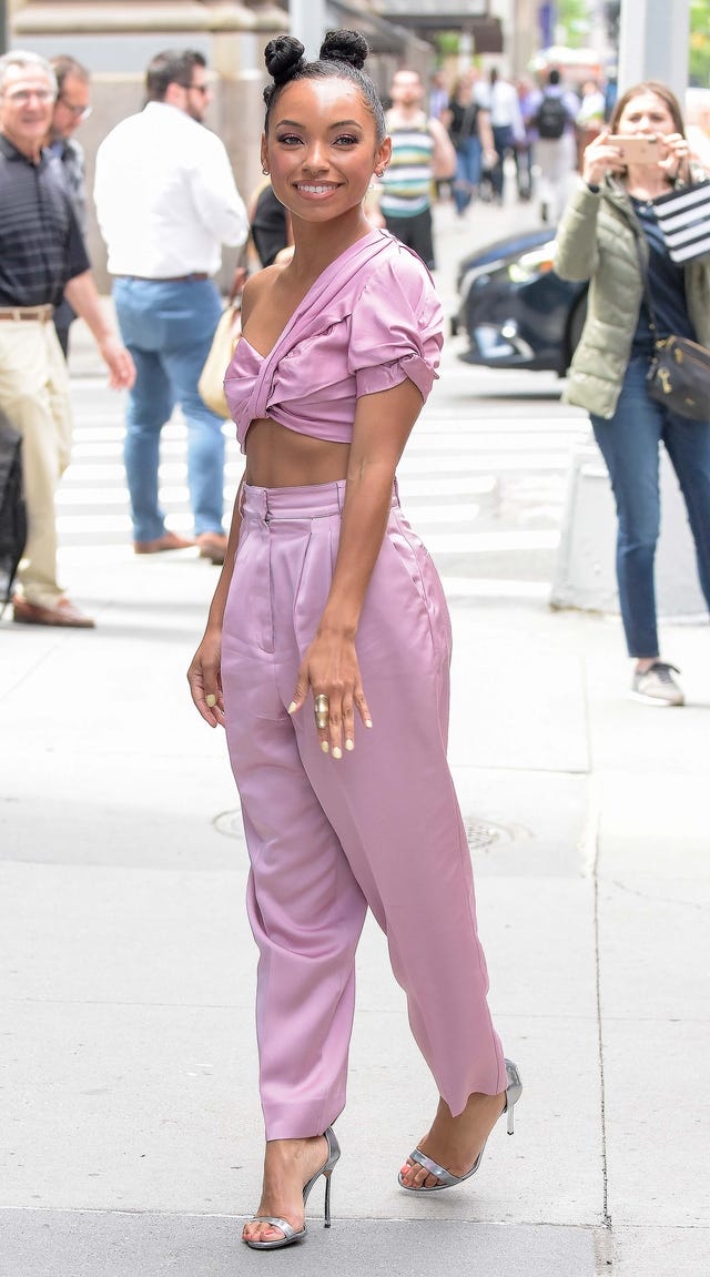 The Perfection actress looked pretty in a pastel two-piece set, which she paired with silver sandals and space buns while out in New York City on May 23.