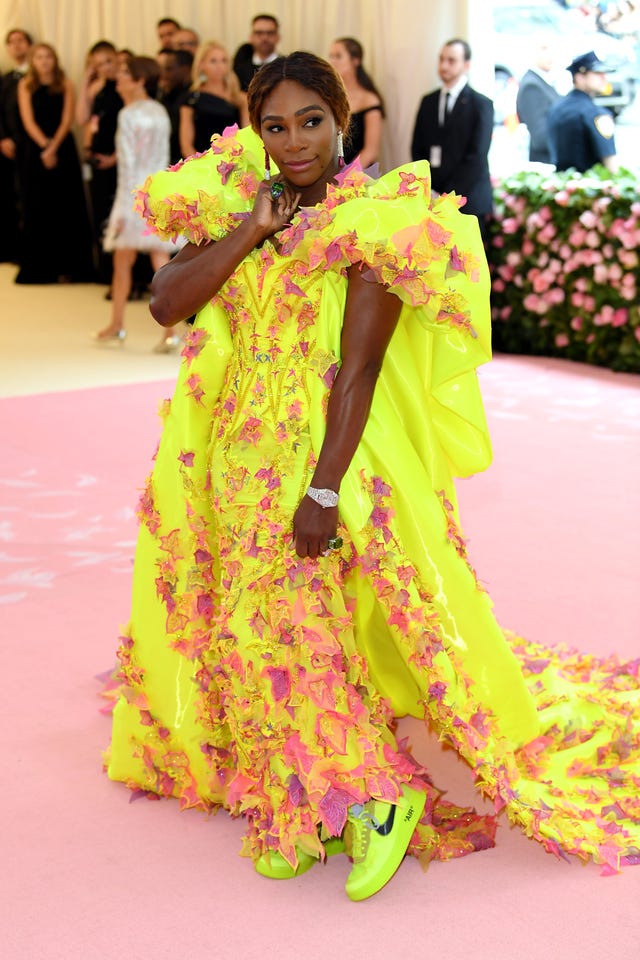 Yes, the tennis pro didn't just wear a neon Versace dress, she also rocked highlighter yellow Off-White X Nike sneakers like a boss.