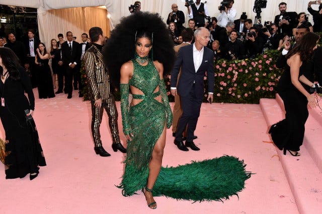 Camp is basically Miller's forte, so all eyes were on his, well, many eyes. His Burberry suit, which came complete with a long train and a silver corset, was pretty impressive as well, as was his 2019 Tiffany Blue Book Collection brooch and diamond rings.