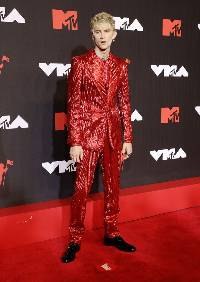 MGK was a sequined stunner in this all-red Dolce & Gabbana look, which he let shine by pairing the bold set with black dress shoes.
