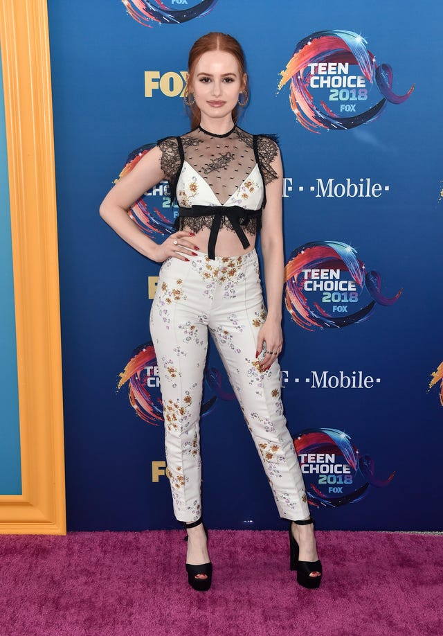 The Riverdale vixen was pretty in floral via a romantic lace crop top and matching pants by Giambattista Valli at the Teen Choice Awards. The actress paired the ensemble with APM Monaco baubles and Giuseppe Zanotti platforms.