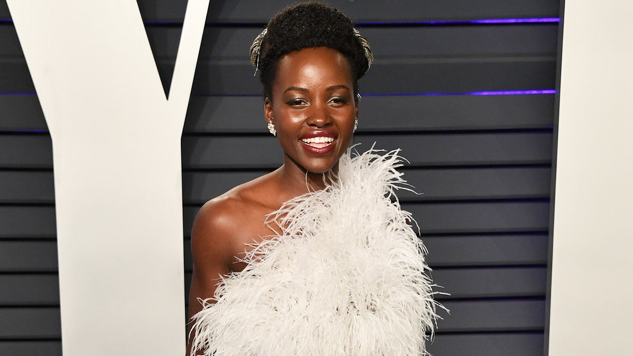 The Black Panther actress skipped the Oscars red carpet, but she graced us with this breathtaking look in a feathered Oscar de la Renta dress at the Vanity Fair party. See the best-dressed celebs at the star-studded soiree here.