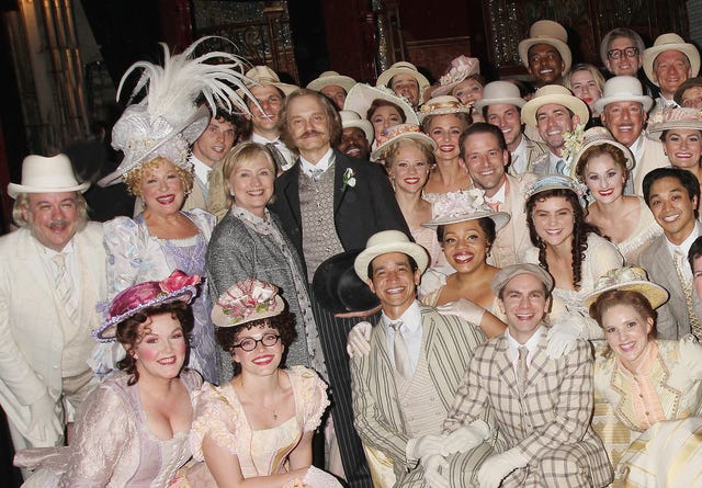 Bette Midler, Hillary Clinton, David Hyde Pierce and the Hello, Dolly! cast pose backstage at The Shubert Theatre.