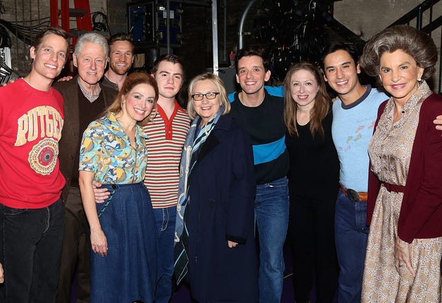 The former First Lady has been a mainstay on the theater scene since 2017, and she's often accompanied by her famous family members, including this backstage visit to Torch Song with her husband and their daughter.