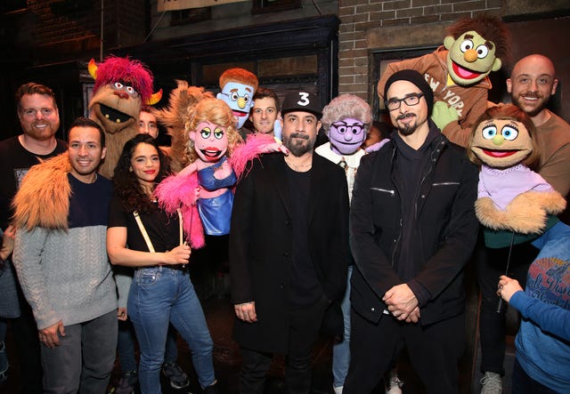 Puppet, please! Howie Dorough, AJ McLean and Kevin Richardson got animated while visiting the cast and crew of Avenue Q at the New World Stages in NYC.