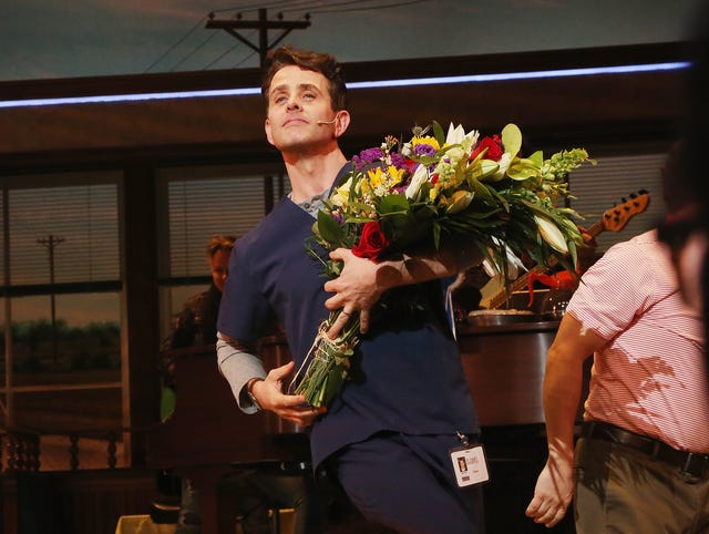 The New Kids on the Block crooner took his first curtain call as Dr. Pomatter in the Broadway musical, Waitress.