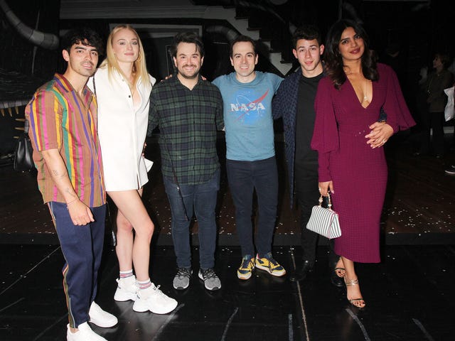 One night before appearing on SNL with older brother Kevin, Joe and Nick Jonas and their wives (aka the J-Sisters) took in a performance of Beetlejuice at the Winter Garden Theatre. They even met many of the actors backstage, including Alex Brightman (Beetlejuice) and Rob McClure (Adam).