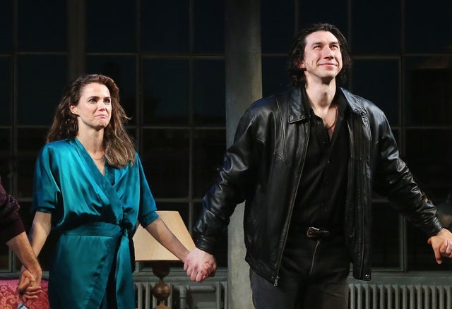 Keri Russell and Adam Driver take opening night curtain call in Burn This