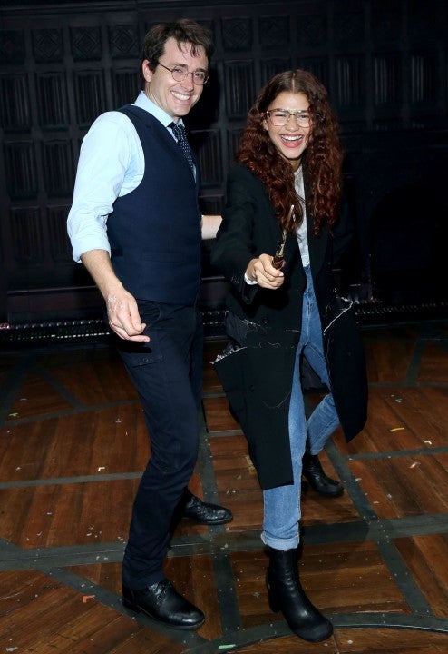 She's magic! The Spider-Man: Far From Home star worked on her wand skills backstage with James Snyder, who plays the title character in the Broadway play, Harry Potter and the Cursed Child: Parts One & Two.