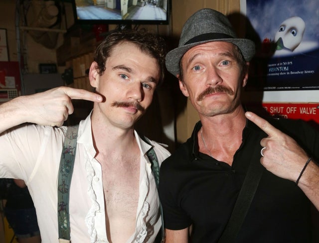 Battle of the 'staches! Jay Armstrong Johnson -- who plays Raoul in the Broadway musical, Phantom of the Opera -- and Harris had a facial hair duel backstage at The Majestic Theatre in NYC.