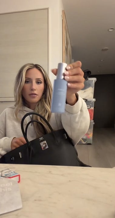 The model uses her medicube yellow Booster Pro with the brand's PDRN Pink Peptide Serum on TikTok on Nov. 24.
