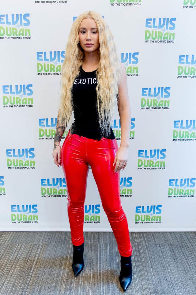 The rapper dressed in red latex pants to visit The Elvis Duran Z100 Morning Show in New York City in 2018.