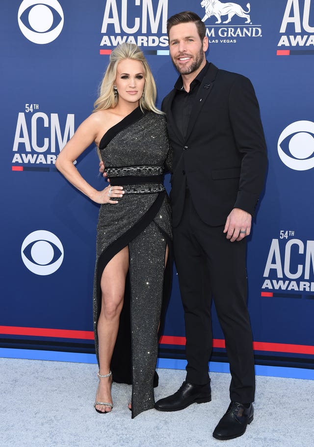 The new parents cozied up on the red carpet for the 2019 CMA Awards in Nashville, Tennessee. The “Girl” singer wore a baby blue two-piece Honayda ensemble. Hurd opted for a navy suit.