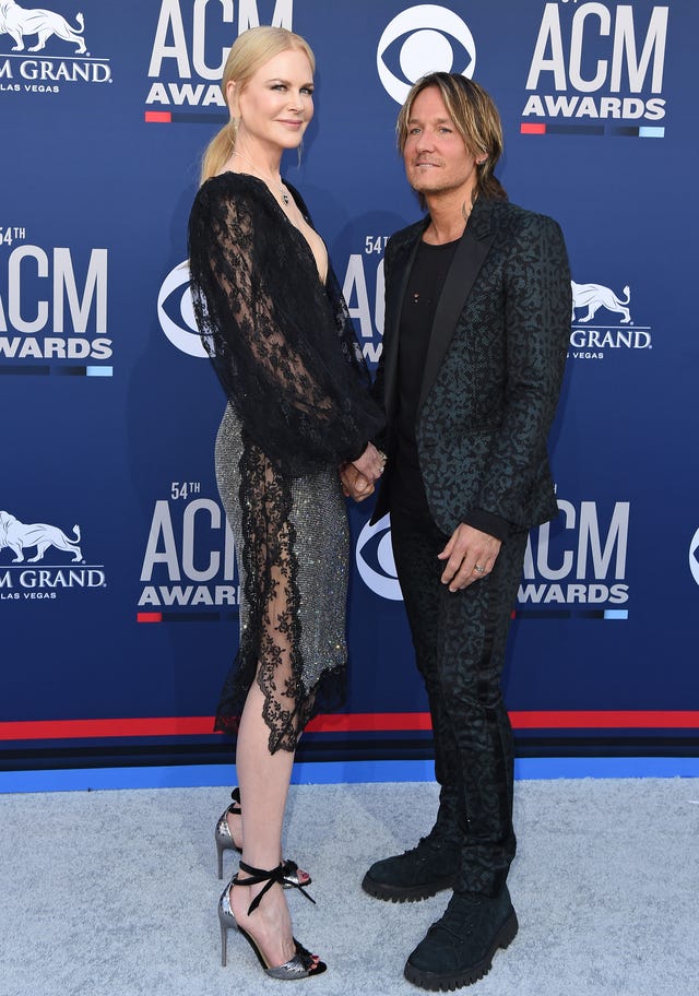 The Lion actress wore a black, lacy Christopher Kane dress to the 54th Academy of Country Music Awards. Her “The Fighter” singer husband opted for a textured suit.