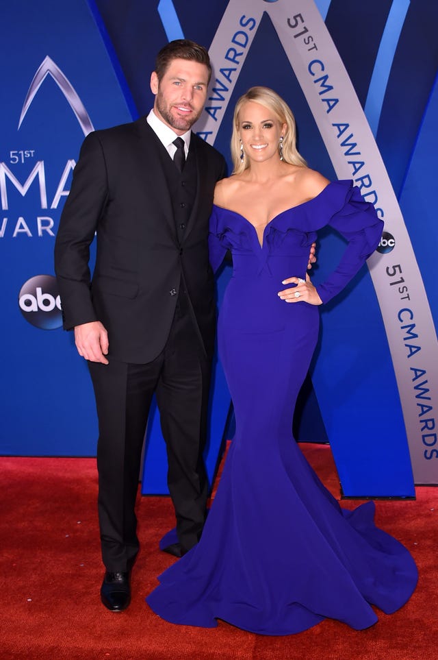 The NHL player looked dashing next to his “Cry Pretty” wife, who wore a royal blue Fouad Sarkis Couture gown to the 2017 CMAs.
