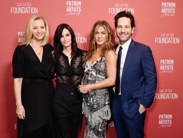 Lisa Kudrow, Courteney Cox, Jennifer Aniston and Paul Rudd -- who played Phoebe Buffay’s love interest Mike Hannigan -- posed together for a photo on the red carpet. During the event, Aniston won the 2019 SAG Artists’ Inspiration Award.