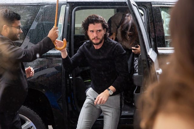 Winter may be coming, but it was the rain the Game of Thrones star had to protect himself from as he arrived at STORYS in Toronto on Sept. 10.