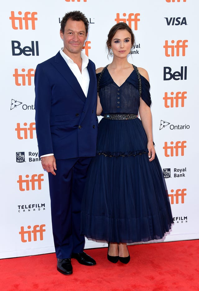 The Colette co-stars matched in navy blue attire for the premiere of their new film during TIFF on Sept. 11.